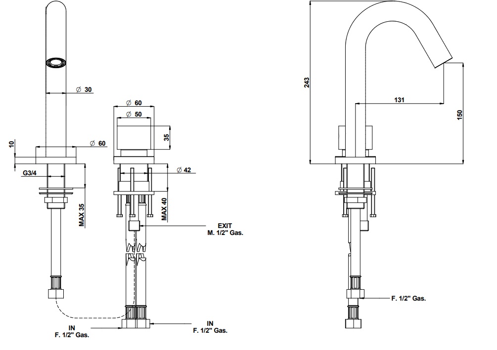 - Średnica wylewki: Ø30 mm