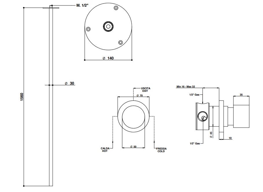Bongio Time2020 Wood Bateria umywalkowa sufitowa brushed stainless steel 69977ASRM