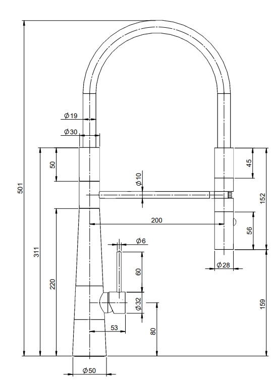 Bongio Time2020 Kitchen Bateria kuchenna jednootworowa brushed stainless steel 70080AS00