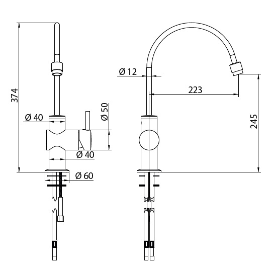 Bongio Time2020 Kitchen Bateria kuchenna jednootworowa brushed stainless steel 70180AS00