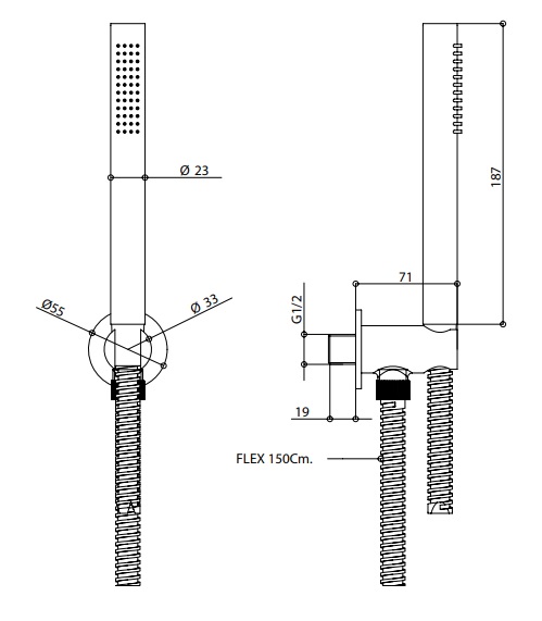 Bongio Time2020 Wellness Zestaw natryskowy ścienny z wężem i słuchawką brushed stainless steel 70830AS00