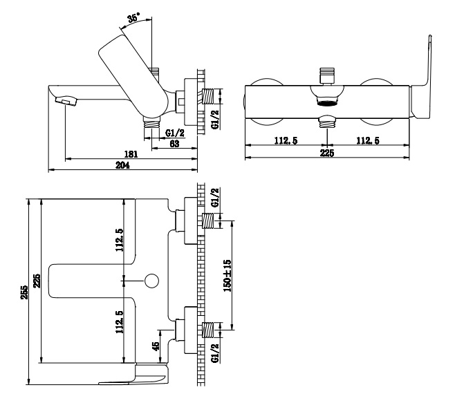 Kohlman Proxima Bateria wannowa ścienna chrom QW110P