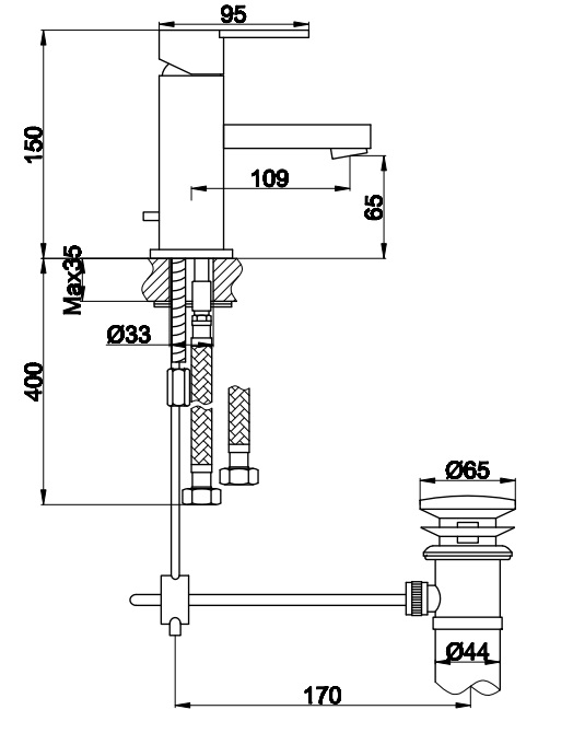 Kohlman Gixs Bateria umywalkowa 1-otworowa chrom QB100G