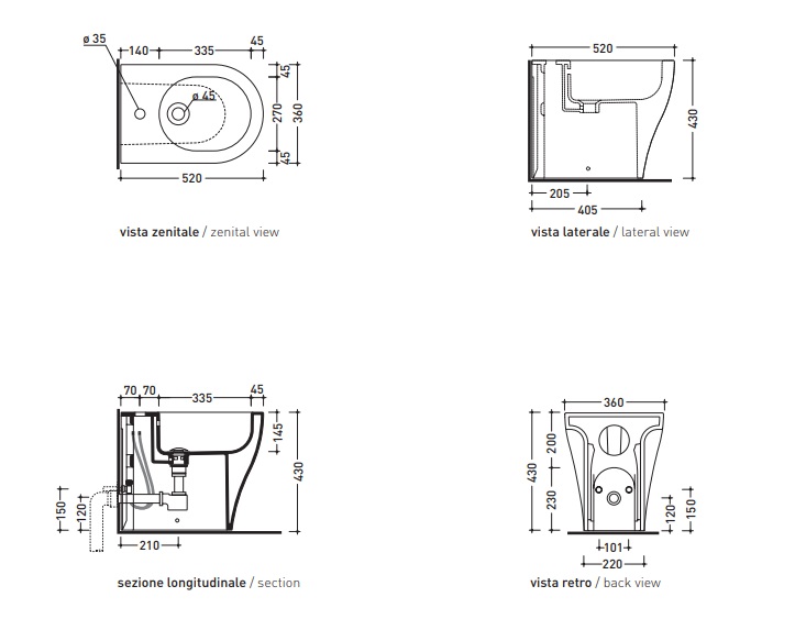 Flaminia App Bidet Stojący 36x54 cm Fango AP217FAN