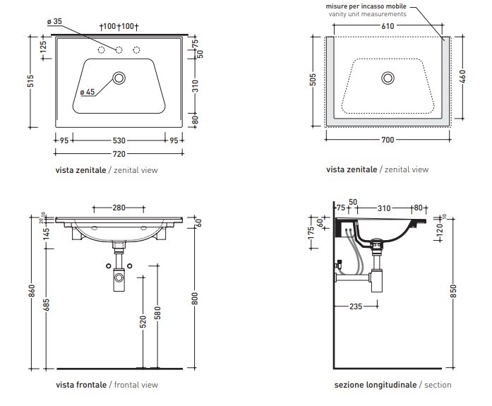Flaminia Bloom Umywalka ścienna prostokątna 72x51,5 cm biała BM70L
