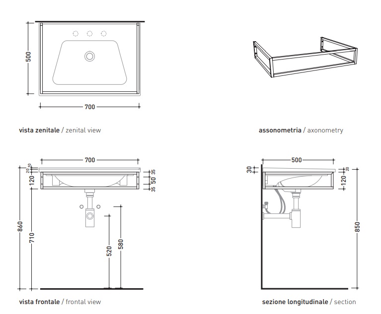 Flaminia Bloom Struktura pod umywalkę 70x50 cm czarny mat BM70SNE