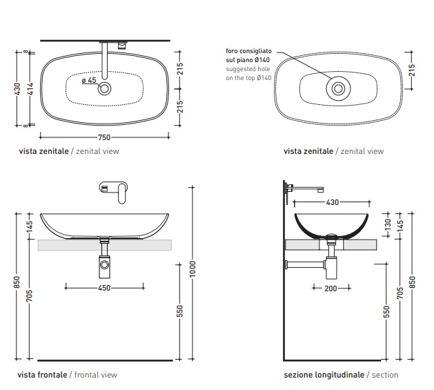 Flaminia Nuda Umywalka stawiana na blat 75x43 cm biała ND75A
