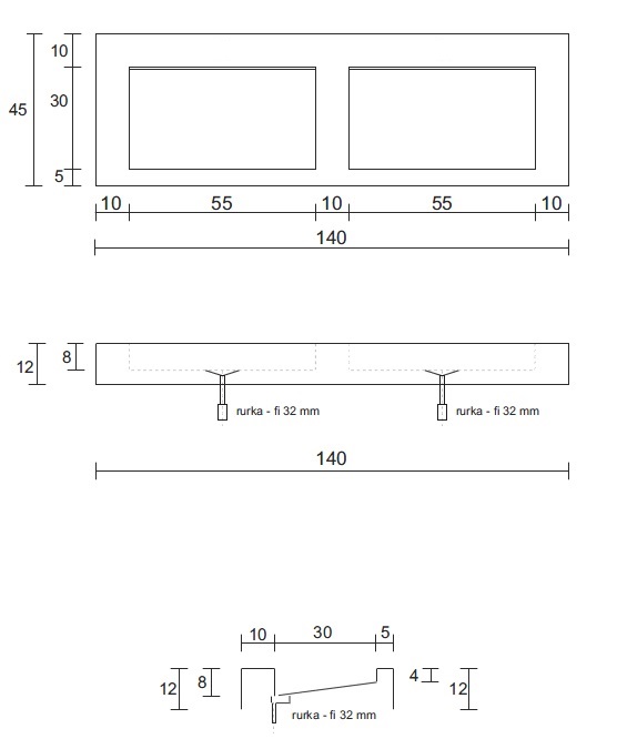 Cristalstone Linea Ideal Umywalka podwójna ścienna bez otworów na baterie biały mat U1400-2xMOLC/BO