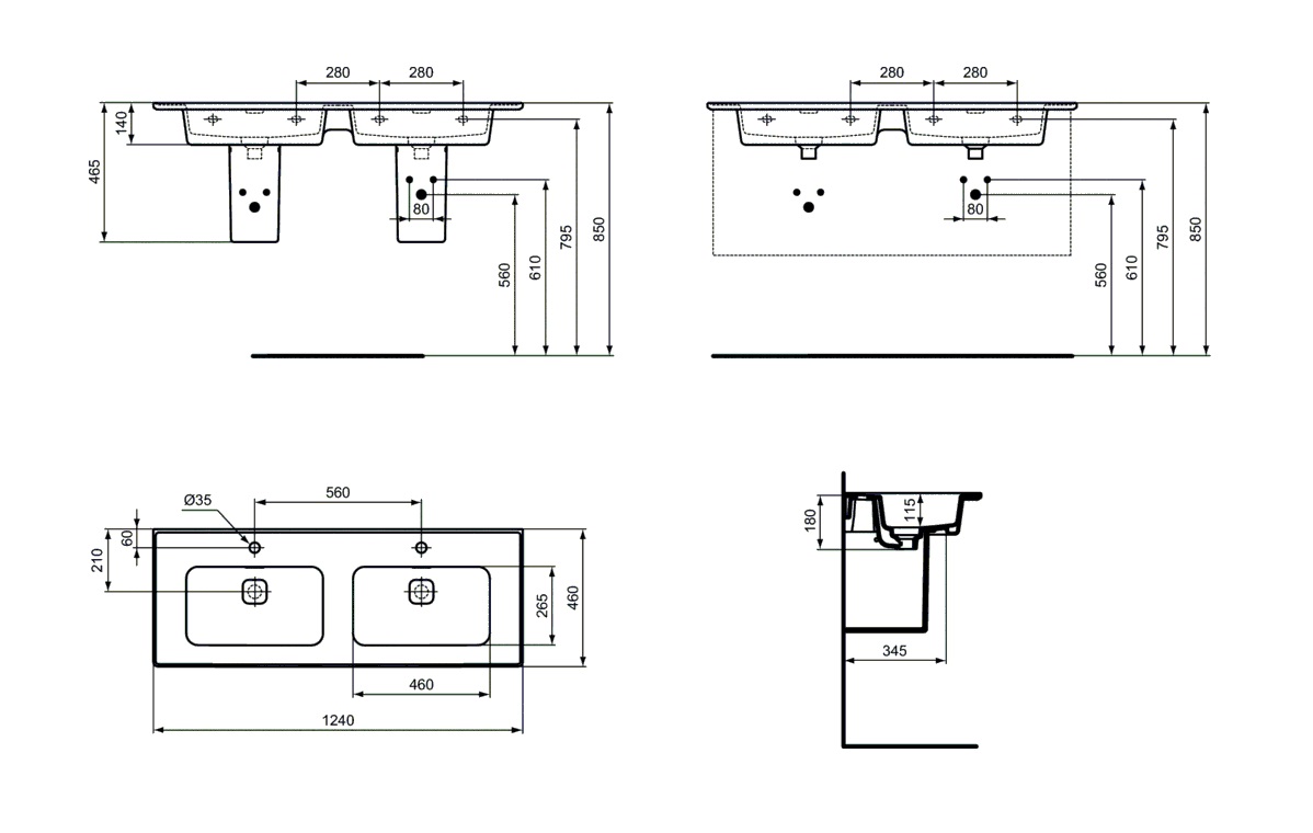 Ideal Standard Strada II Vanity Umywalka ścienna podwójna 124x46 cm prostokątna biała T300501