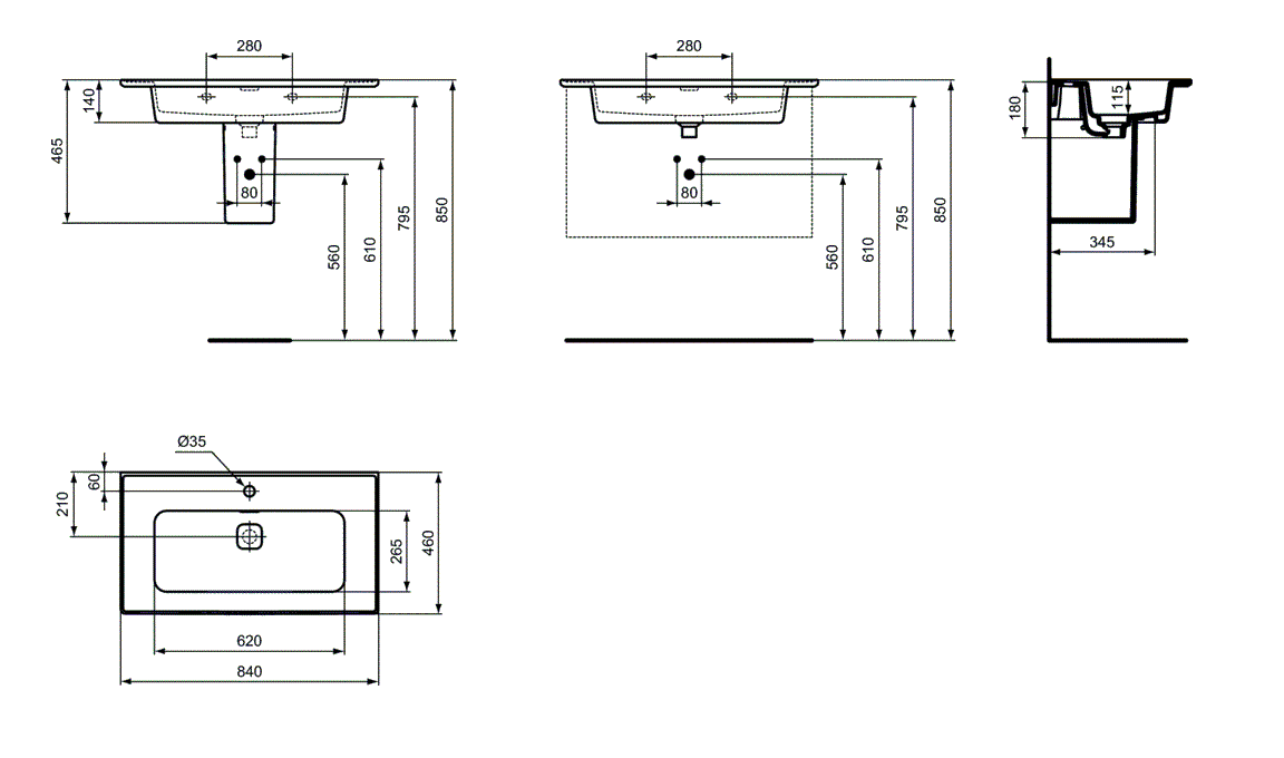 Ideal Standard Strada II Vanity Umywalka ścienna 84x46 cm prostokątna biała T300301