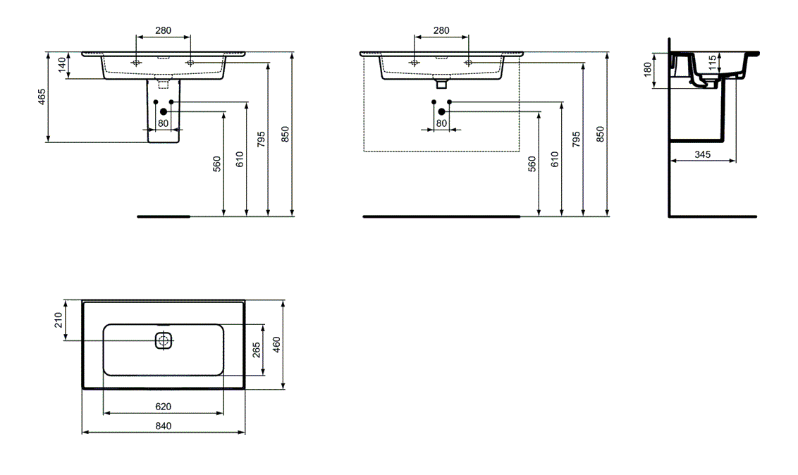 Ideal Standard Strada II Vanity Umywalka ścienna 84x46 cm prostokątna biała T363401