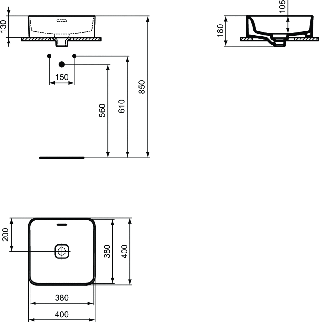 Ideal Standard Strada II Vessel Umywalka stawiana na blat 40x40 cm kwadratowa biała T296301