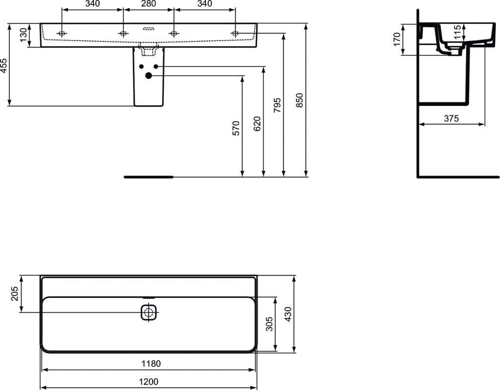 Ideal Standard Strada II Basin Umywalka ścienna 120x43 cm prostokątna biała T364101