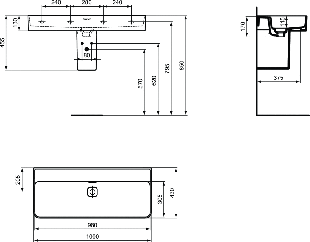 Ideal Standard Strada II Basin Umywalka ścienna 100x43 cm prostokątna biała T364001