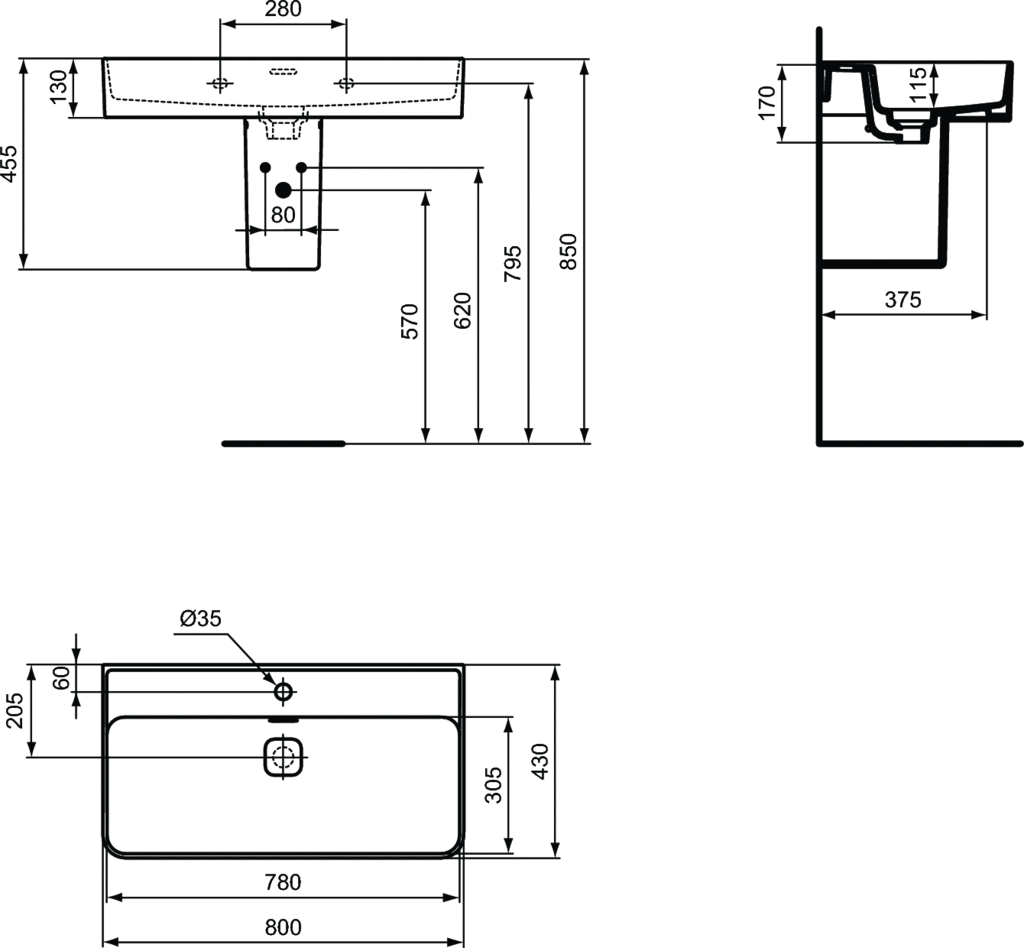 Ideal Standard Strada II Basin Umywalka ścienna 80x43 cm prostokątna biała T300101