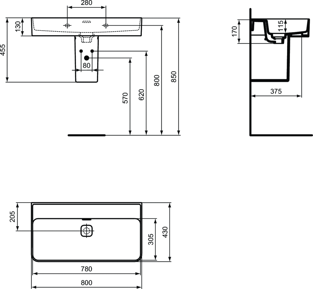 Ideal Standard Strada II Basin Umywalka ścienna 80x43 cm prostokątna biała T363901