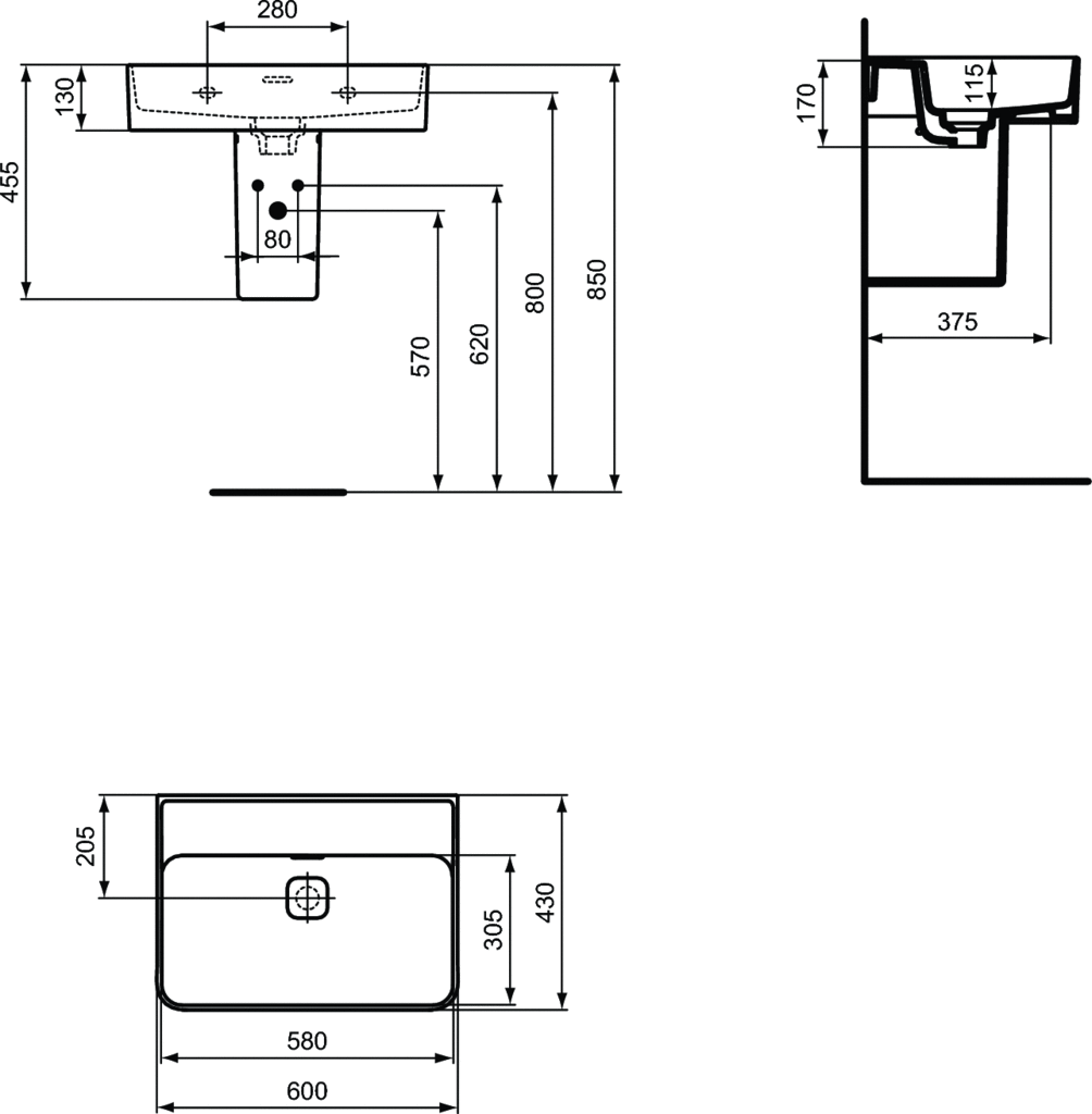 Ideal Standard Strada II Basin Umywalka ścienna 60x43 cm prostokątna biała T363801