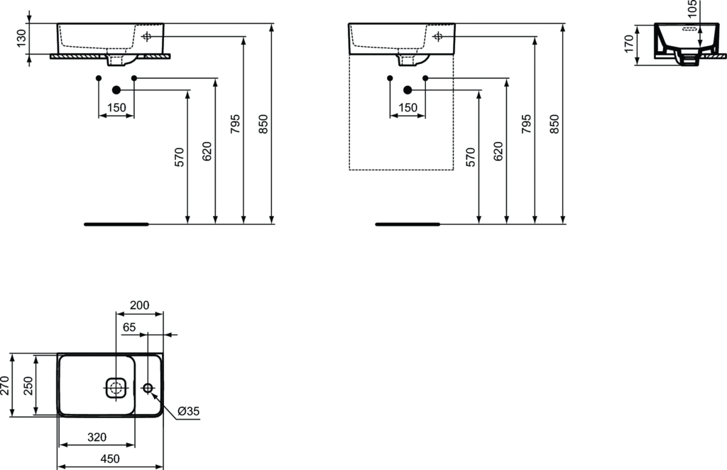 Ideal Standard Strada II Handrinse Umywalka ścienna/stawiana na blat 45x27 cm asymetryczna prawa biała T299401