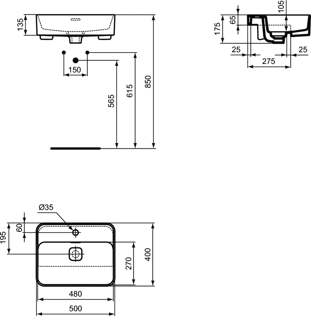 Ideal Standard Strada II Se/CTP Basin Umywalka półwpuszczana w blat 50x40 cm prostokątna biała T299301