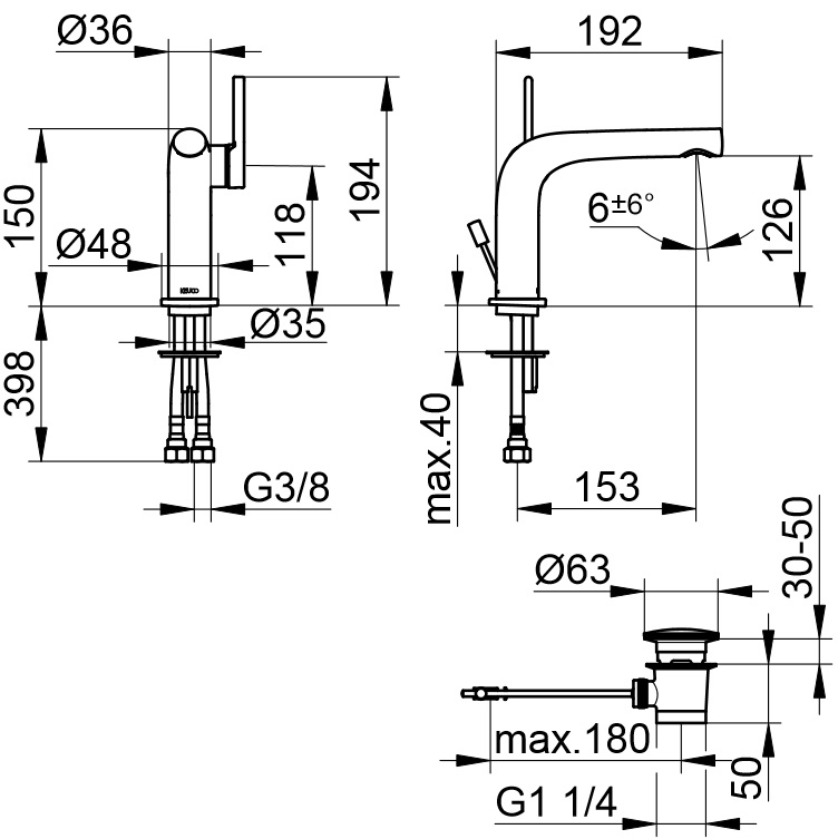 Z korkiem i systemem odpływowym 1 1/4 cala,