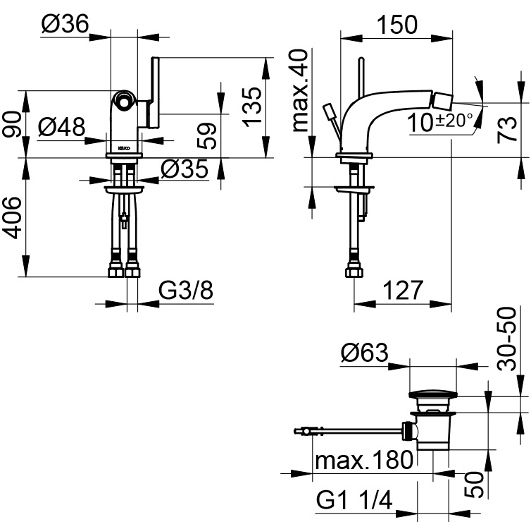 Z korkiem i systemem odpływowym 1 1/4 cala,