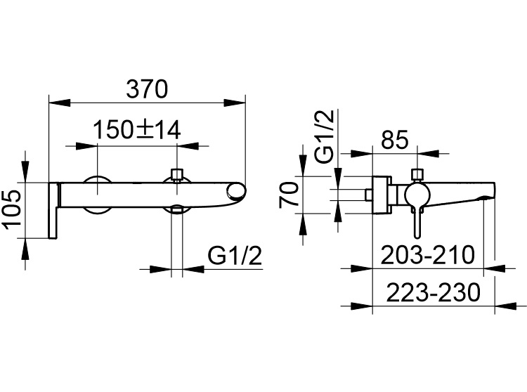 wysięg wylewki: 203-210 mm