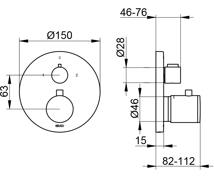 wysięg od ściany: 46-76 mm