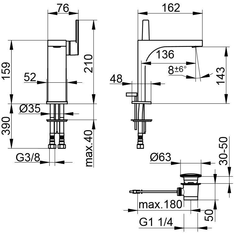 wysokość wylewki: 159 mm