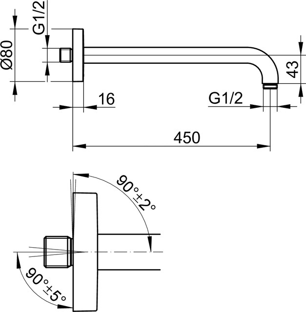 Keuco Elegance Ramię prysznica 462 mm, Chrom 51688010400
