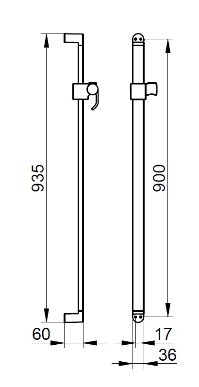 Wymiary: długość: 900 mm odległość od ściany: 60 mm