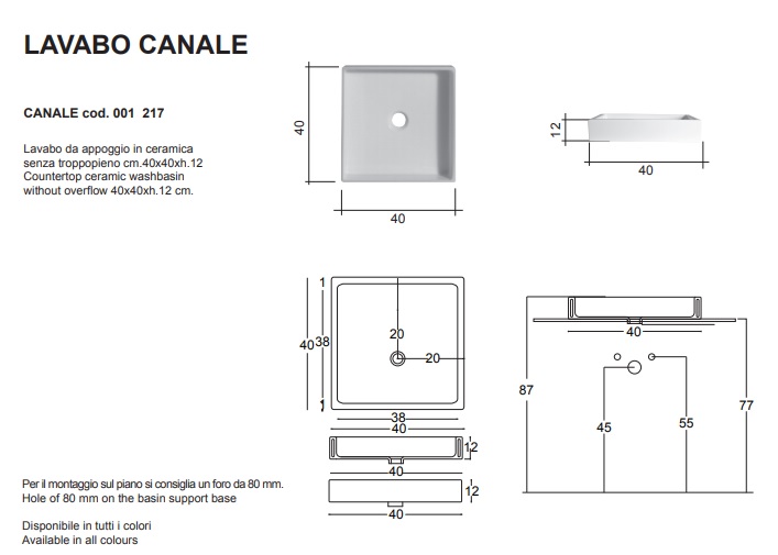 NIC Design Canale Umywalka stawiana na blat 40x40 cm antracyt mat 001217013