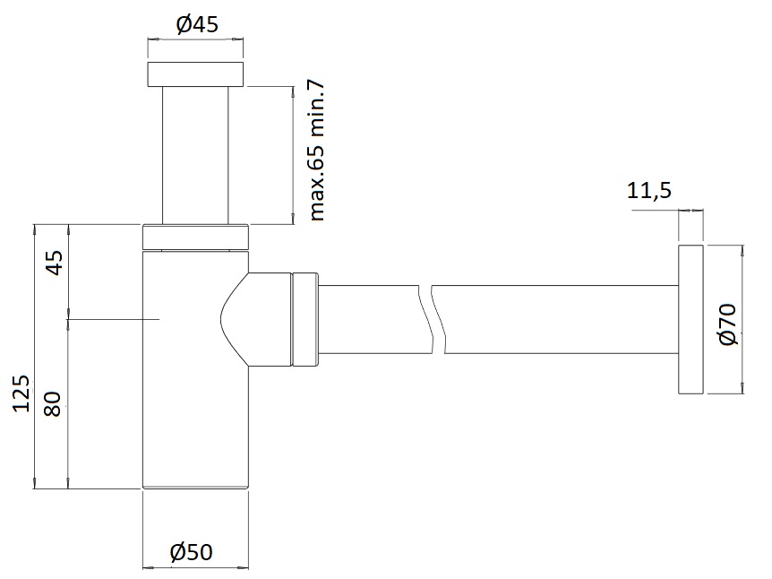 M&Z Syfon umywalkowy butelkowy okrągły czarny mat A750/CZAR