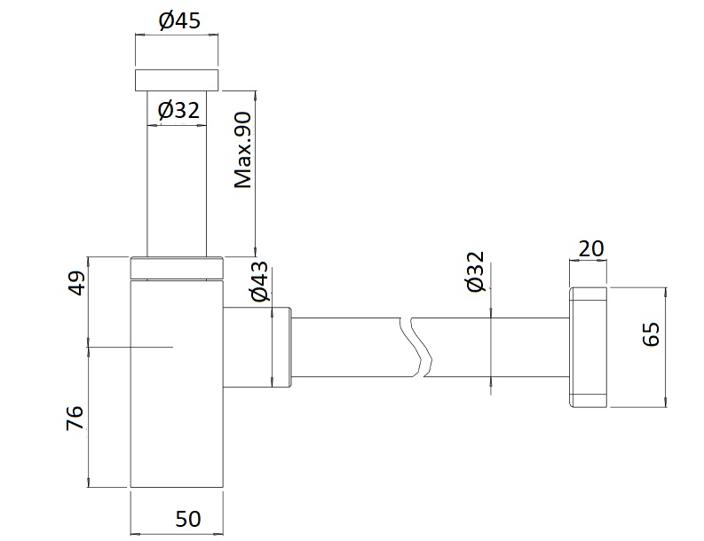 M&Z Syfon umywalkowy butelkowy kwadratowy czarny mat A740/CZAR