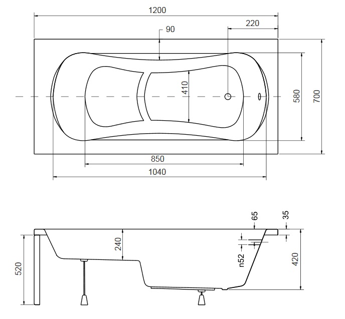 Besco Aria Rehab Wanna prostokątna 120x70 biała WAR-120-PA