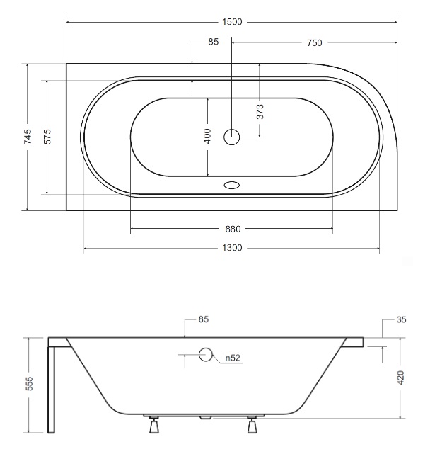 Besco Avita Wanna asymetryczna Prawa 150x75 biała WAV-150-NP