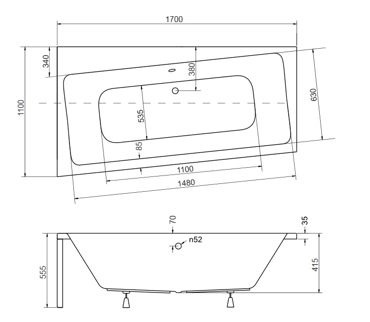 Besco Infinity Wanna asymetryczna Lewa 170x110 biała WAI-170-NL