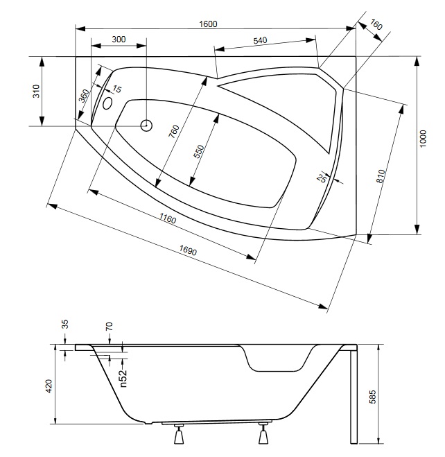Besco Rima Wanna asymetryczna Prawa 160x100 biała WAR-160-NP