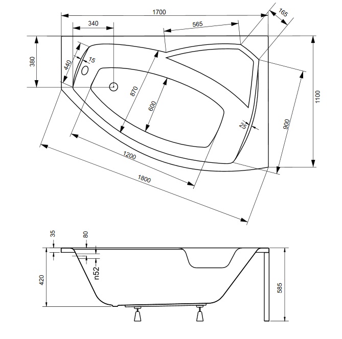 Besco Rima Wanna asymetryczna Prawa 170x110 biała WAR-170-NP