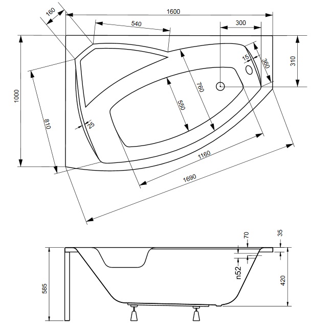 Besco Rima Wanna asymetryczna Lewa 160x100 biała WAR-160-NL