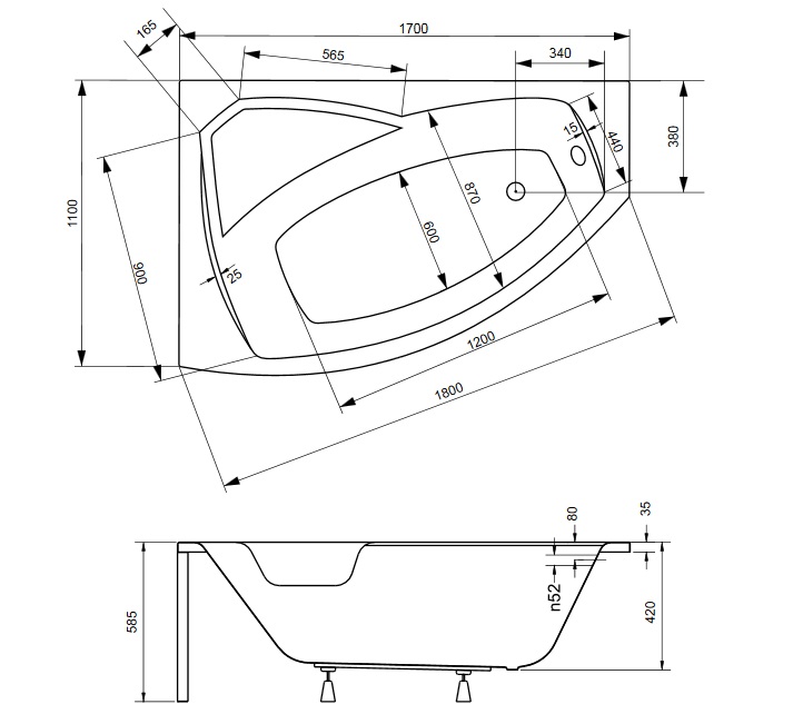 Besco Rima Wanna asymetryczna Lewa 170x110 biała WAR-170-NL
