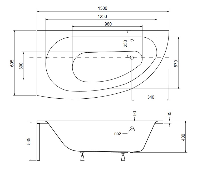 Cena dotyczy wanny z zagłówkiem i uchwytami