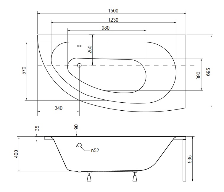 Cena dotyczy wanny z zagłówkiem i uchwytami