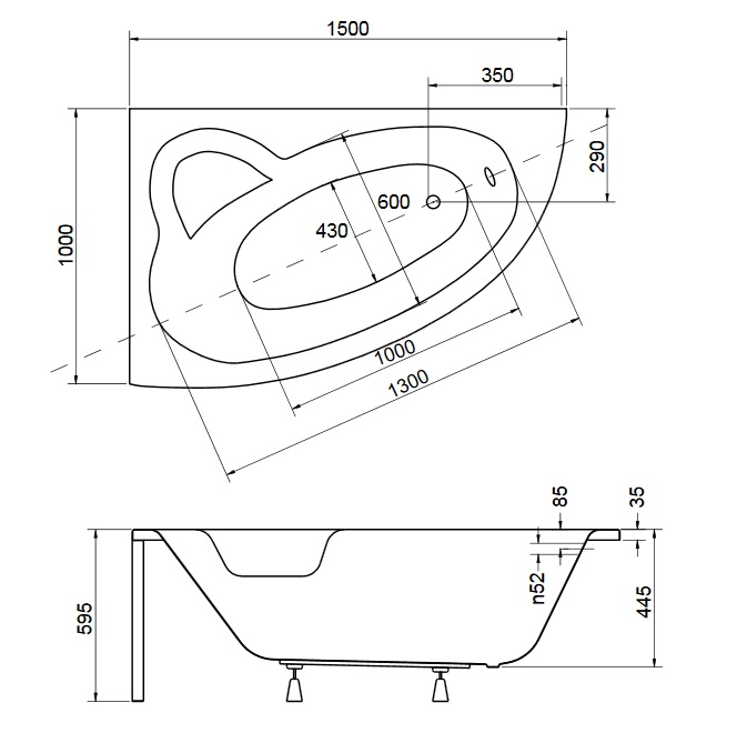 Besco Natalia Wanna asymetryczna Lewa 150x100 biała WAN-150-NL