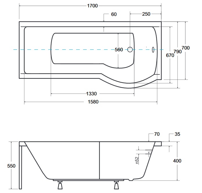 Besco Inspiro Wanna Do Zabudowy+Parawan Prawa 170x70 biała WAI-170-NPR
