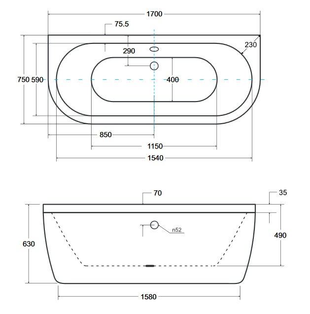 Odpływ w komplecie, dodatkowe wyposażenie na zapytanie.