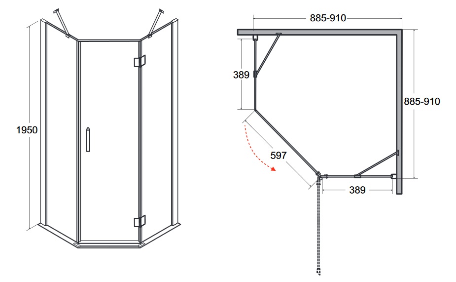 Besco Viva Kabina Prysznicowa Prawa 90x90 V5P-90-195-C