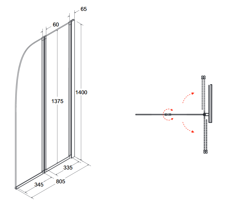 Parawan odwracalny - możliwość montażu z leweji prawej strony.