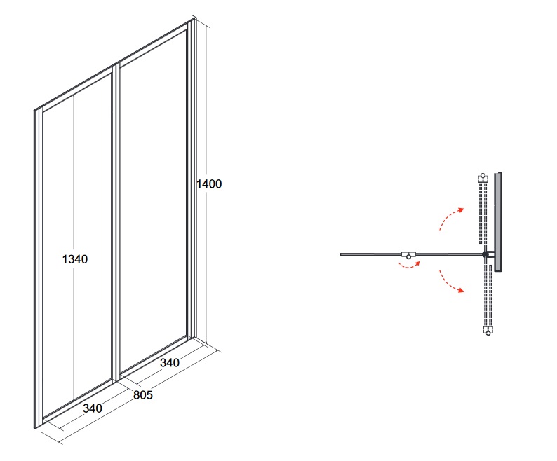 Parawan odwracalny - możliwość montażu z leweji prawej strony.