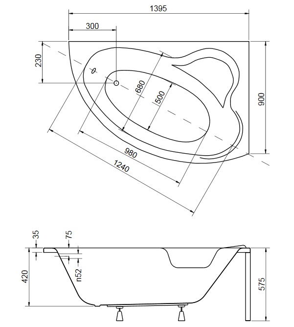 Besco Ada Wanna asymetryczna Prawa 140x90 biała WAA-140-NP