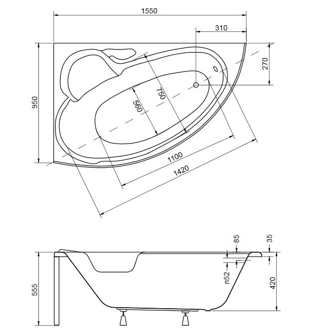 Besco Finezja Nova Wanna asymetryczna Lewa 155x95 biała WAF-155-NL